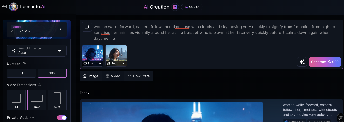 Generate with Kling 2.1 Pro Using Start and End Frame